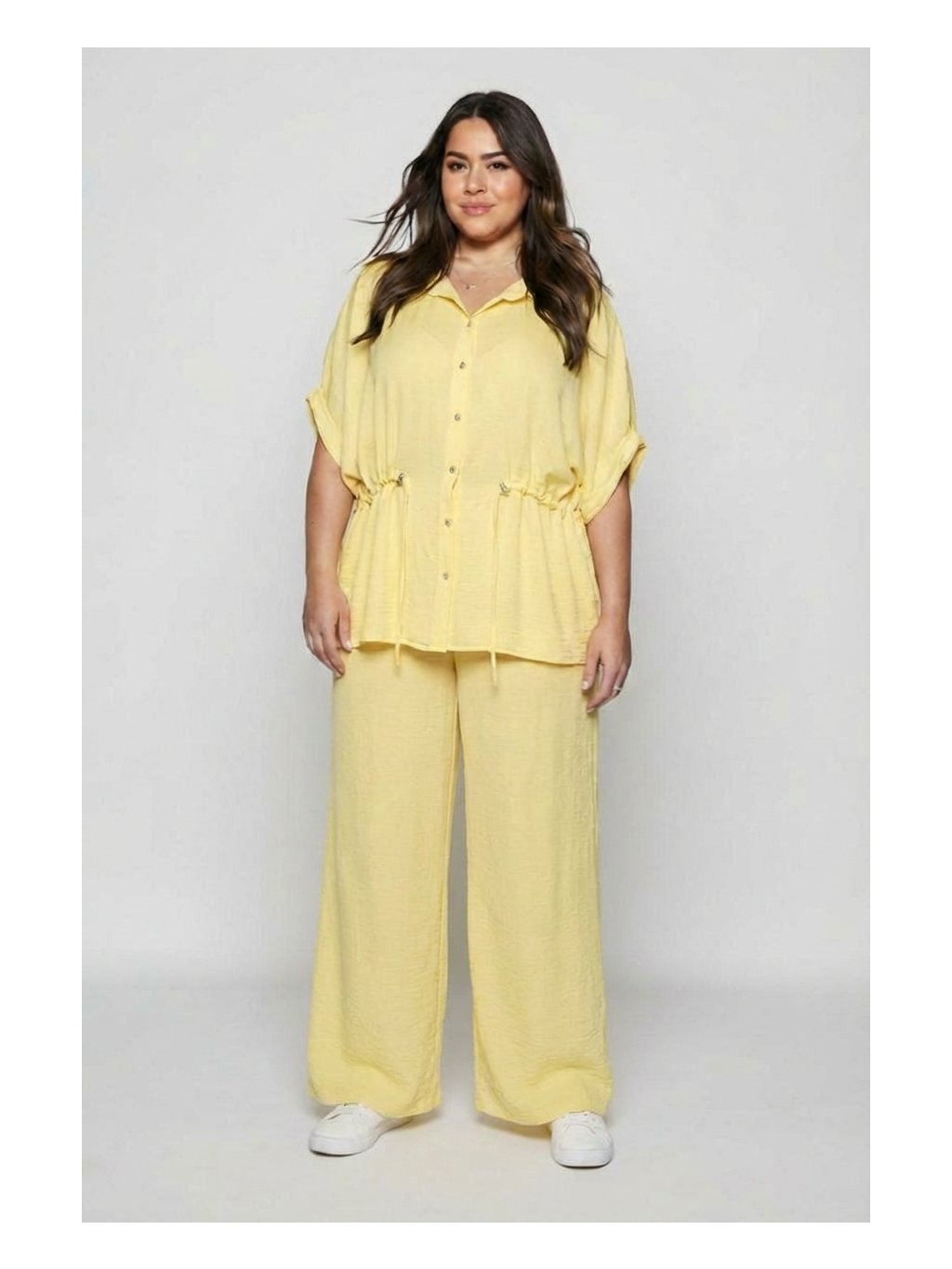 Horní díl: Košile s celopropínacím zapínáním, v pase na stažení – můžete si ji upravit podle své postavy, nebo nosit volně.