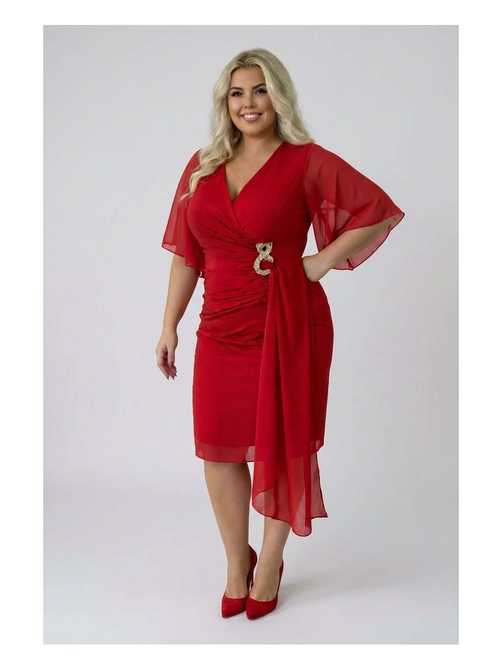 Modelka má míry hrudník 122cm,boky 120cm a výšku 178cm,má na sobě velikost 54