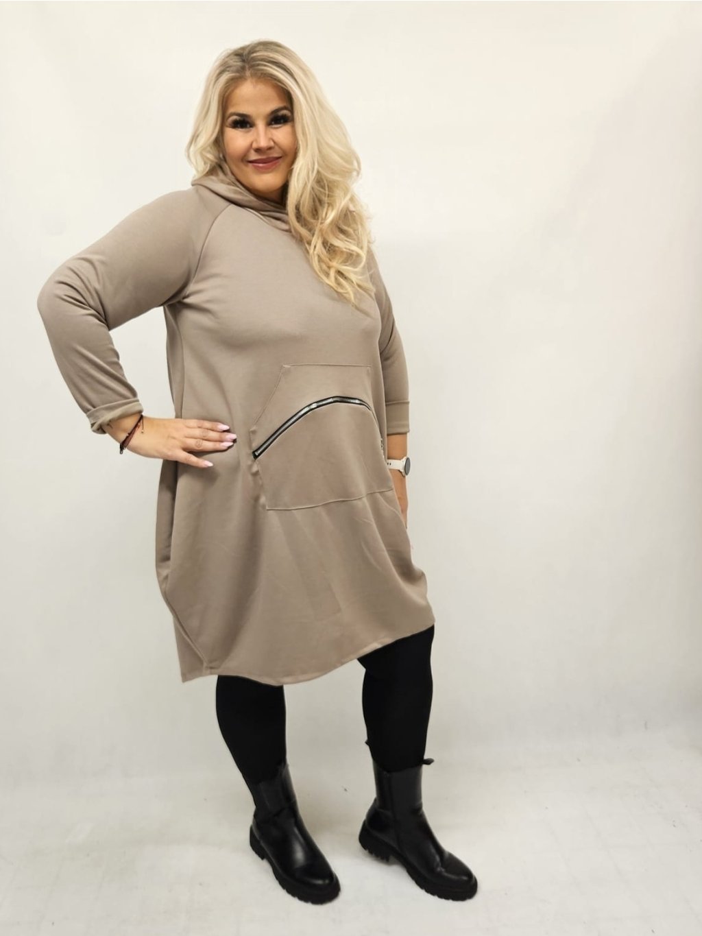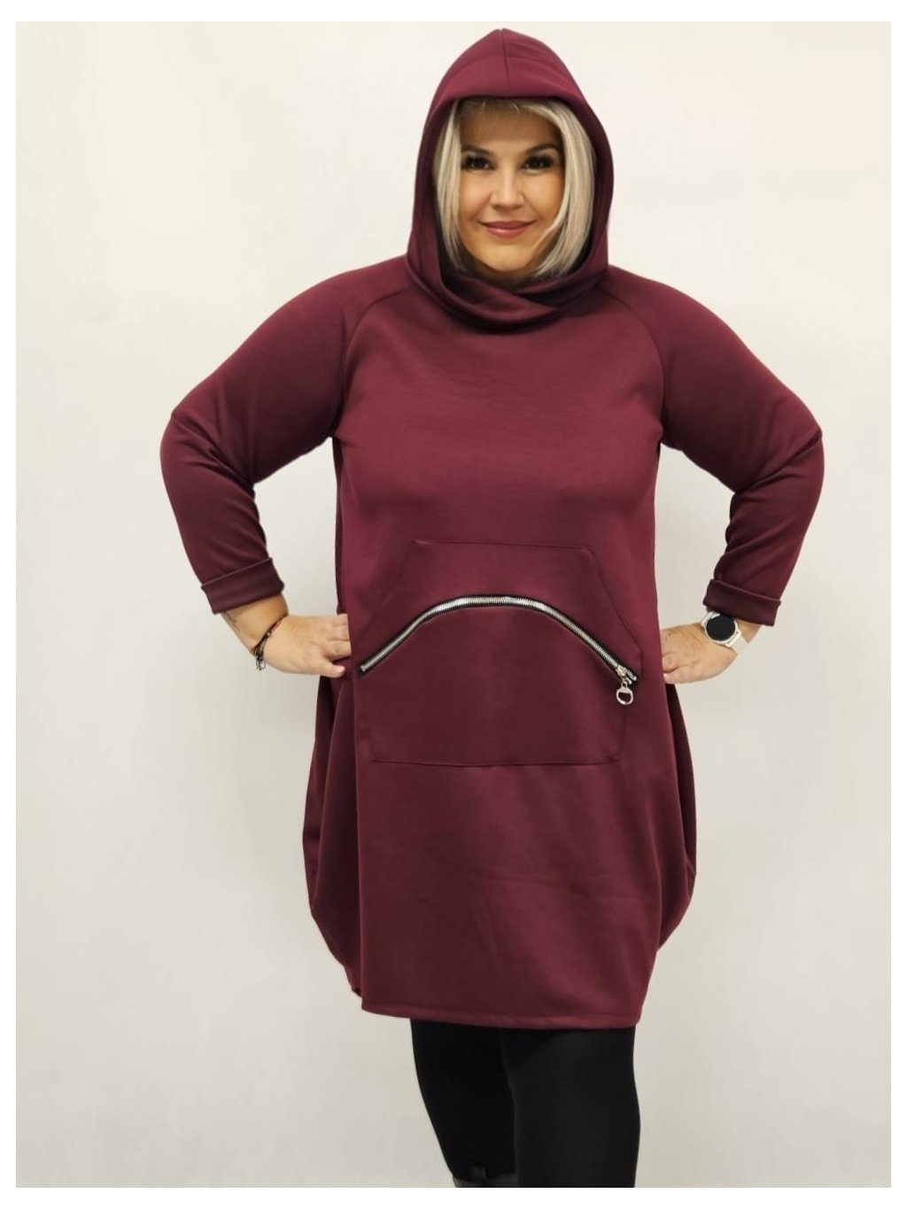 Modelka měří 167 cm,běžně nosí velikost 48 a má míry hrudník 116 cm a boky 122 cm