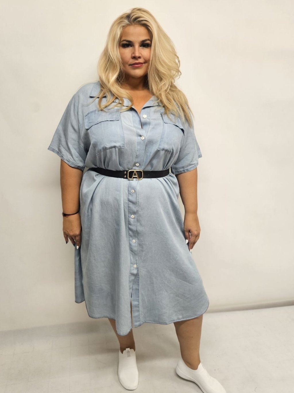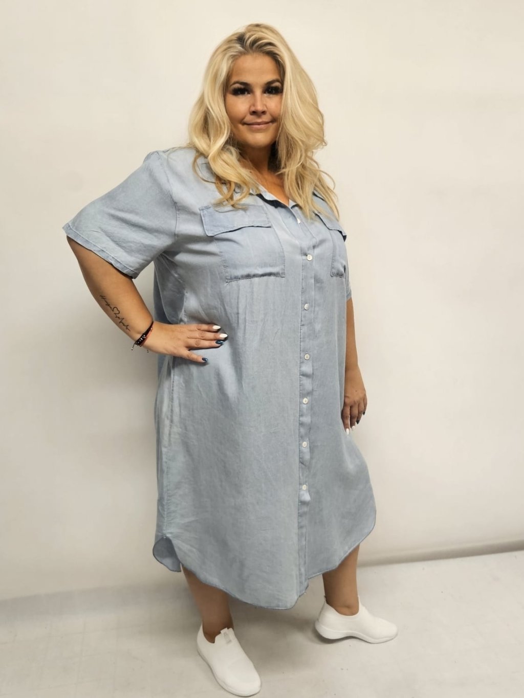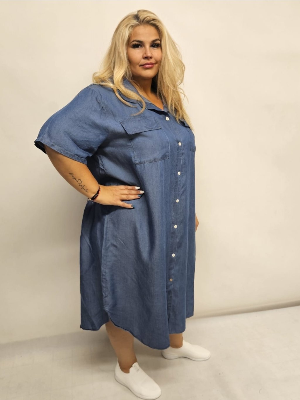 👗 Knoflíčky po celé délce, jemně prodloužený zadní díl – ideální kousek pro plus size ženy, které chtějí styl a pohodlí v jednom.Bez kapes.