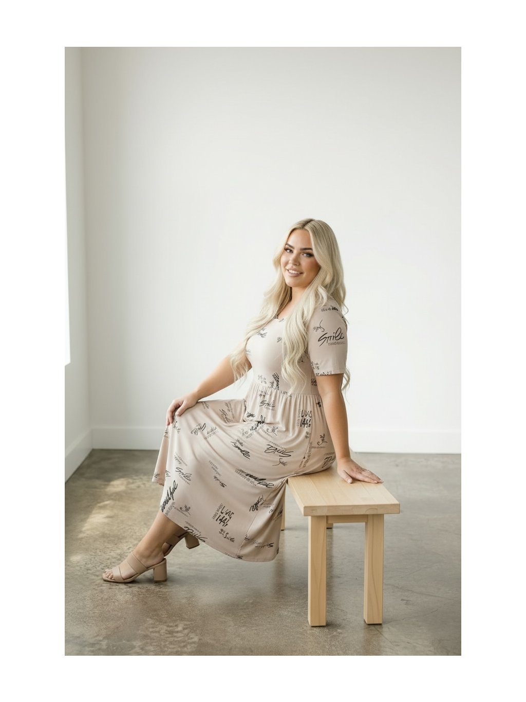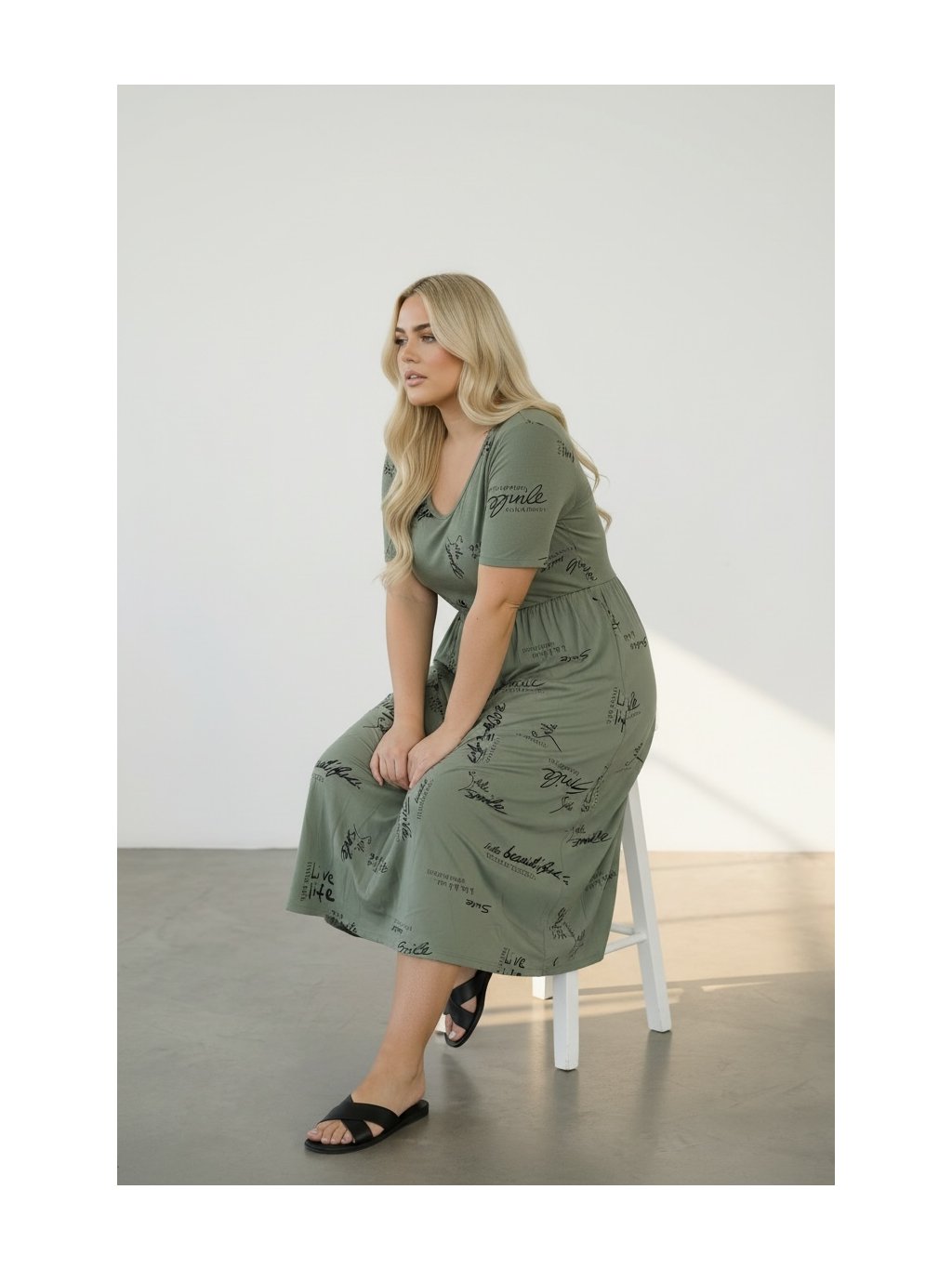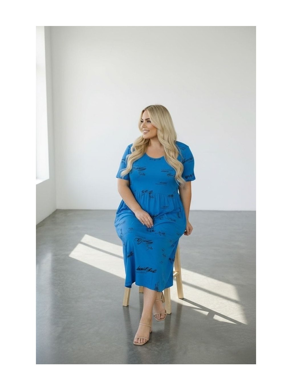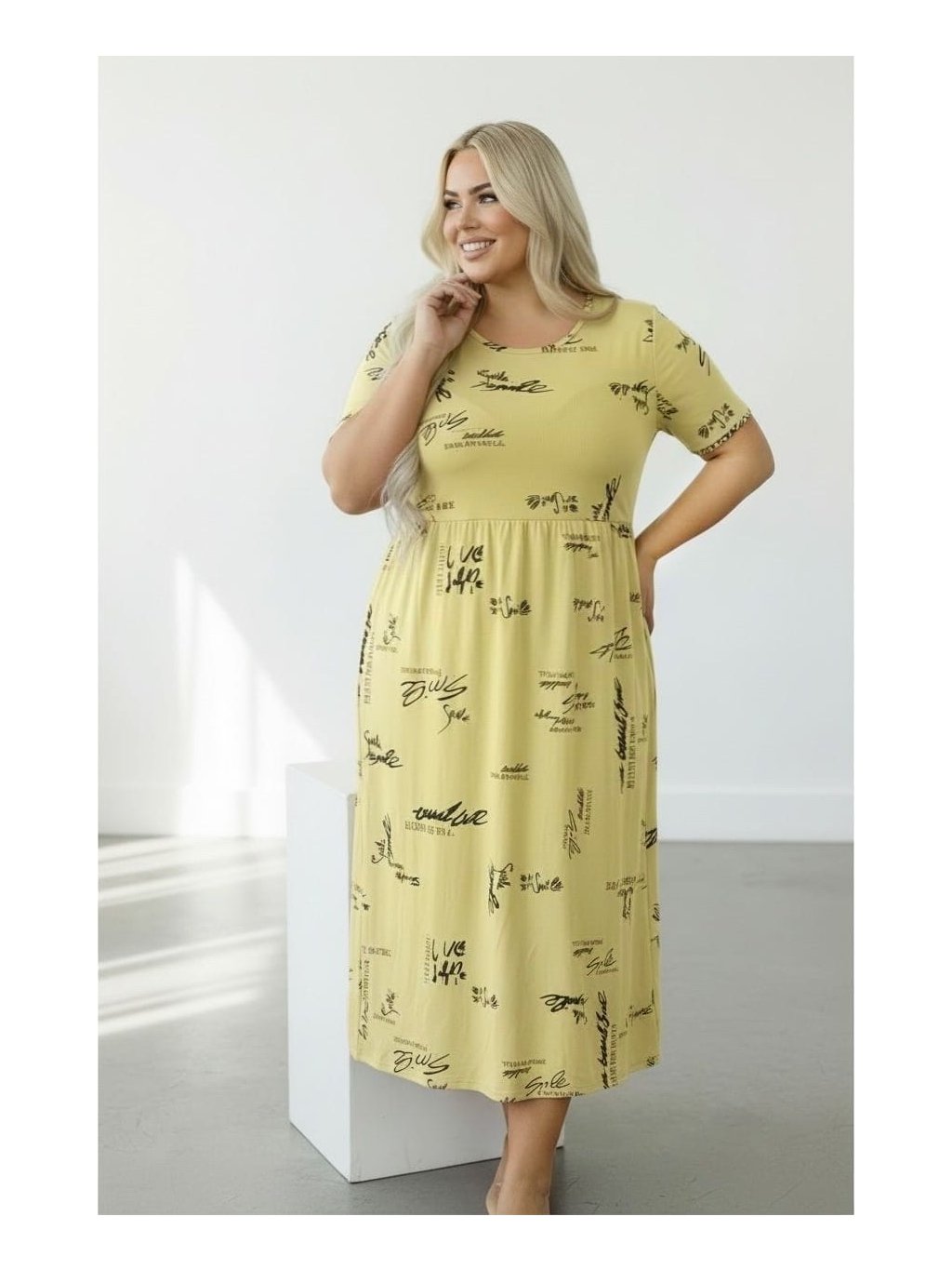 Empírový střih (pod prsy) krásně zvýrazní dekolt a volně splývá přes bříško i boky