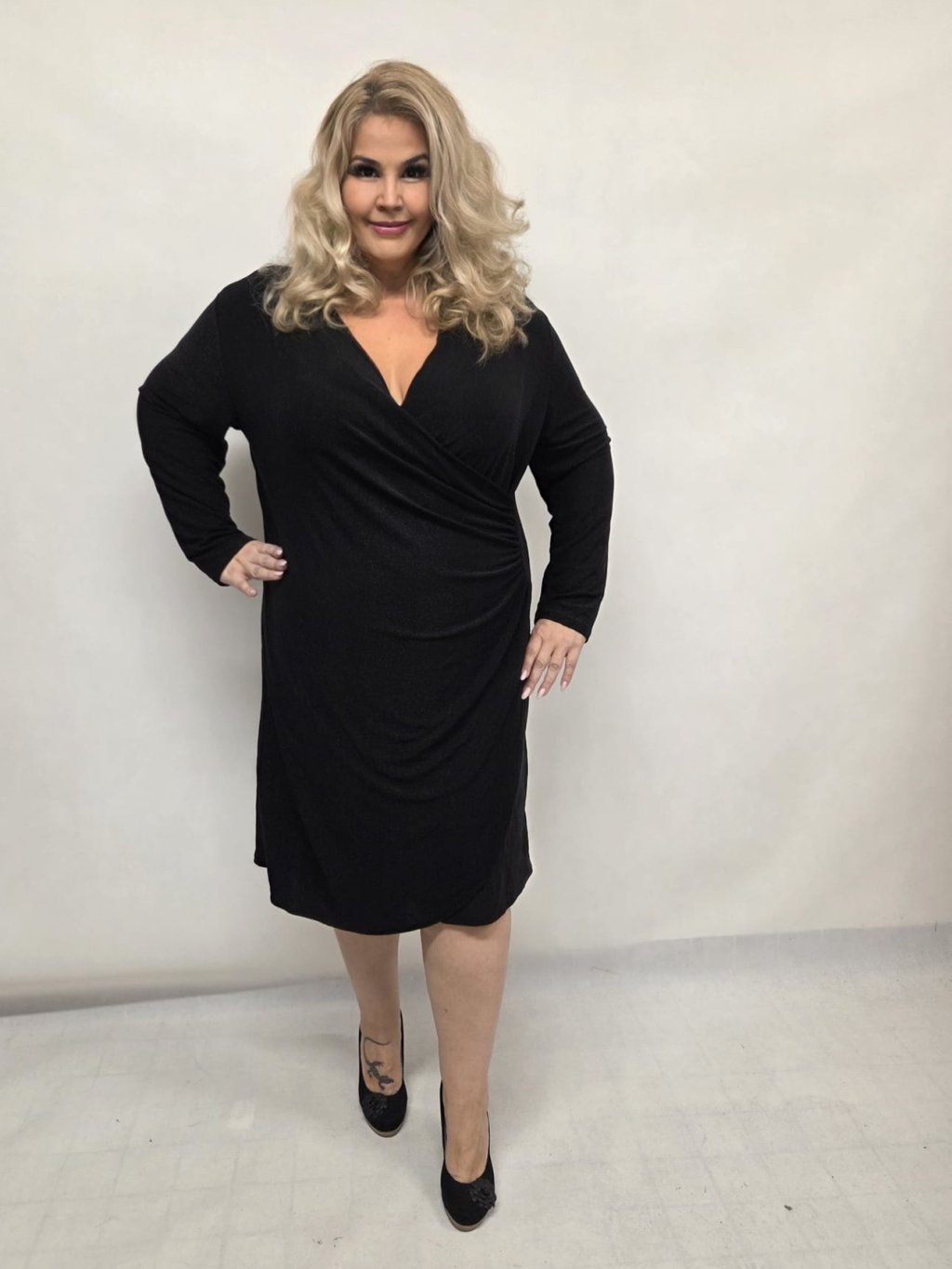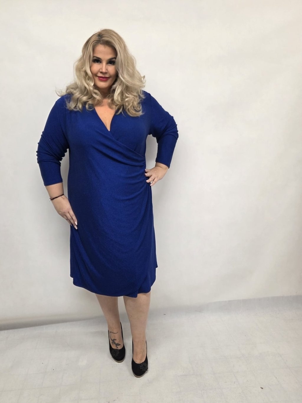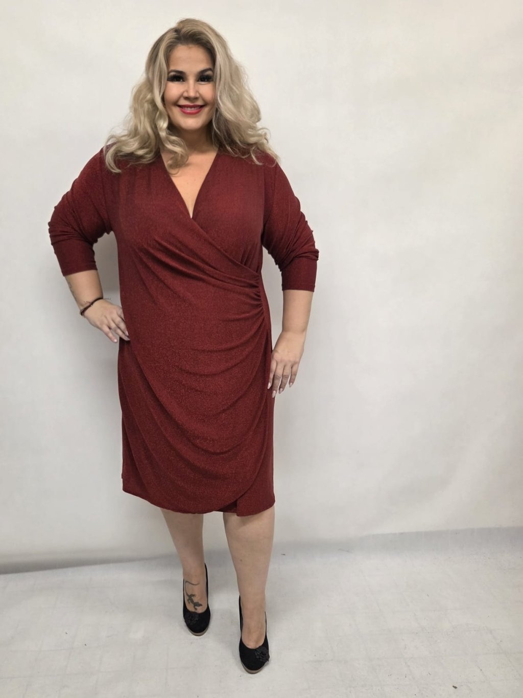 Modelka měří 167 cm a běžně nosí velikost 48,míry má hrudník 116 cm,boky 120 cm