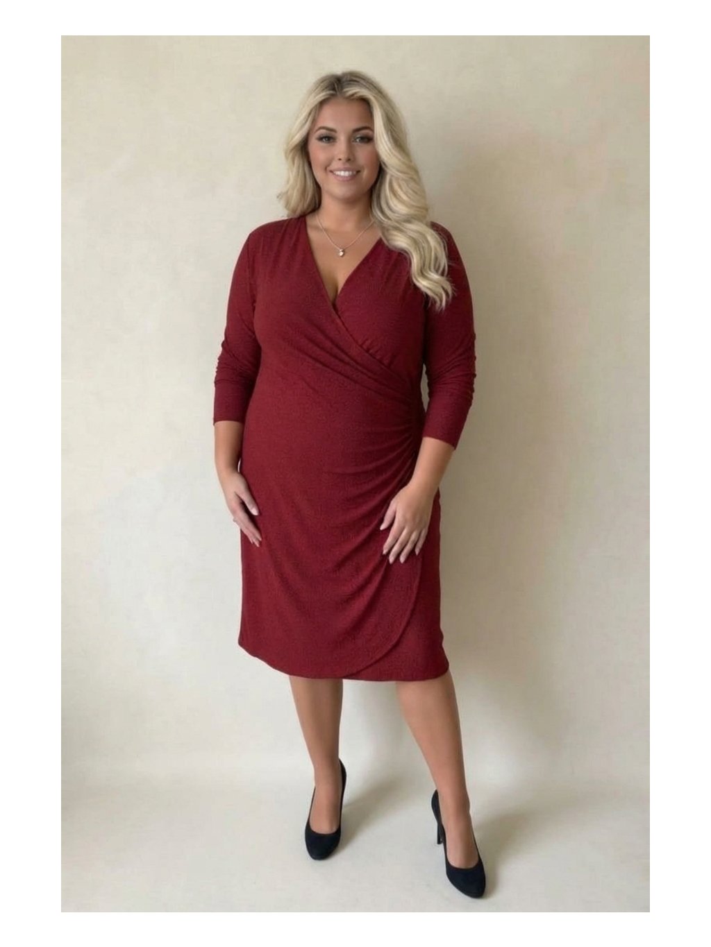 Modelka měří 167 cm a běžně nosí velikost 48,míry má hrudník 116 cm,boky 120 cm