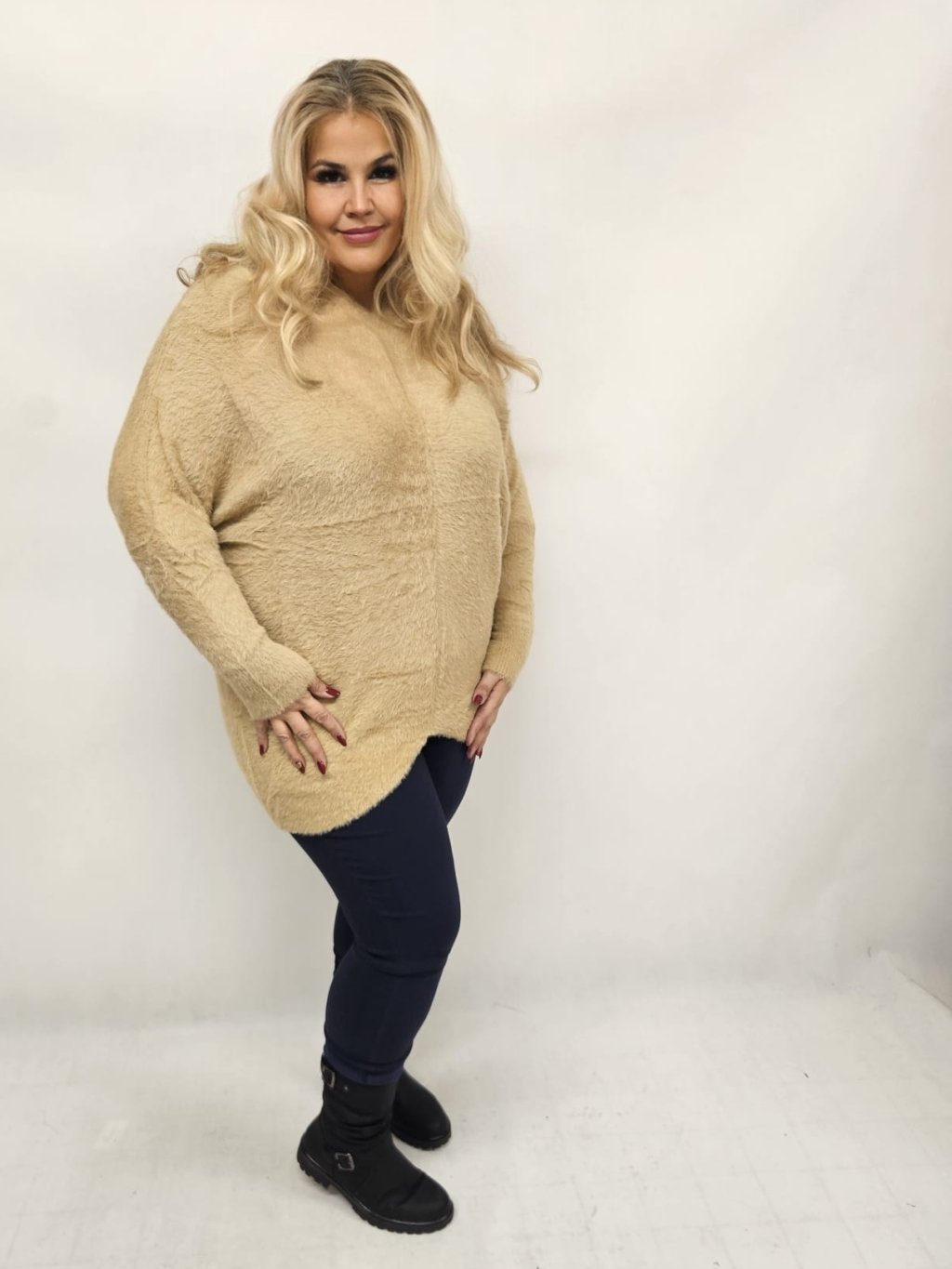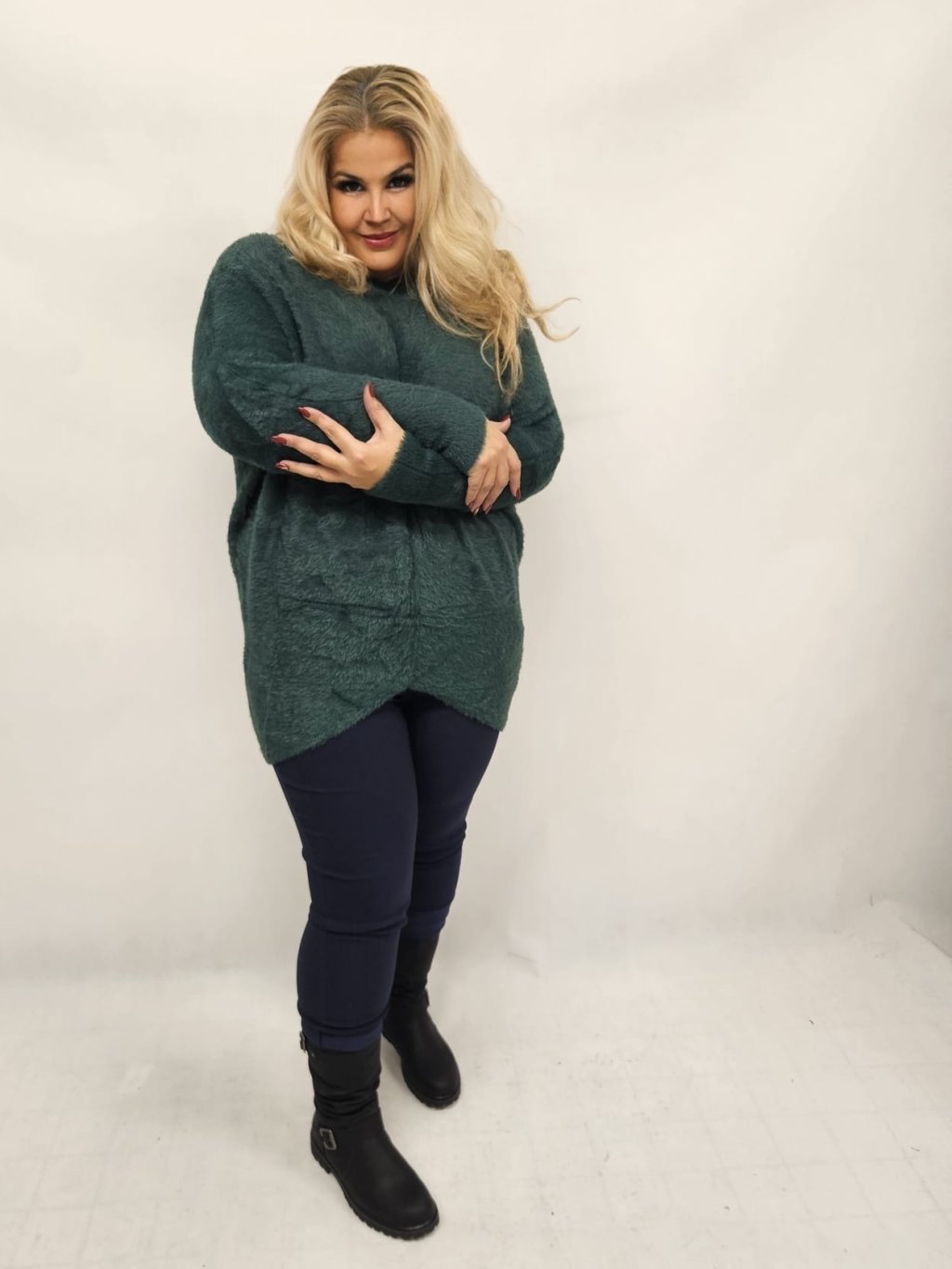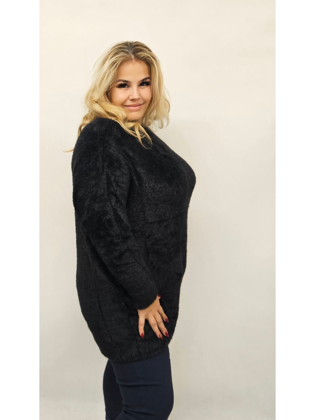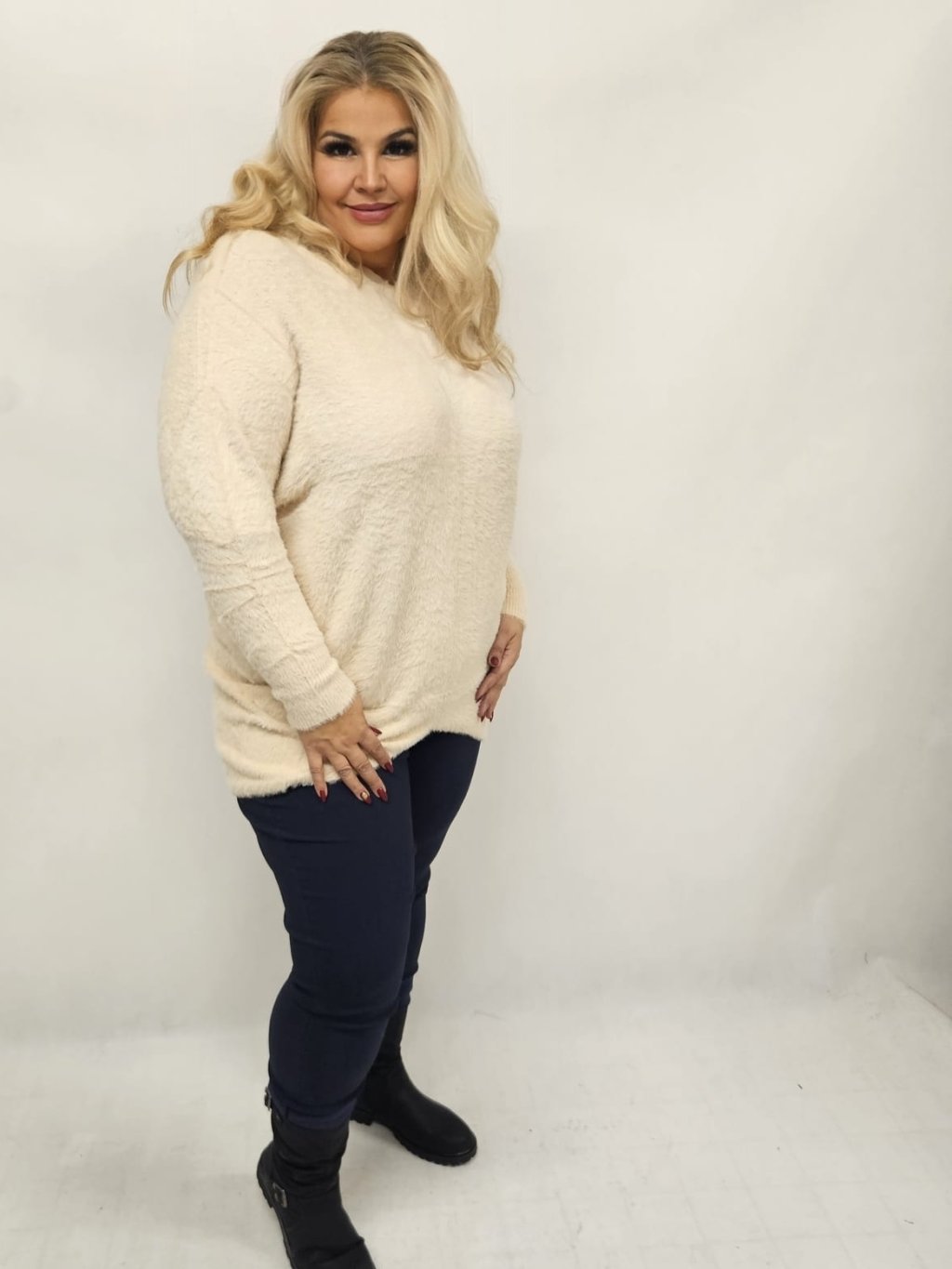 Je velmi příjemný, měkký a pružný, s huňatým povrchem, který přímo vybízí k zachumlání.Bez kapes.