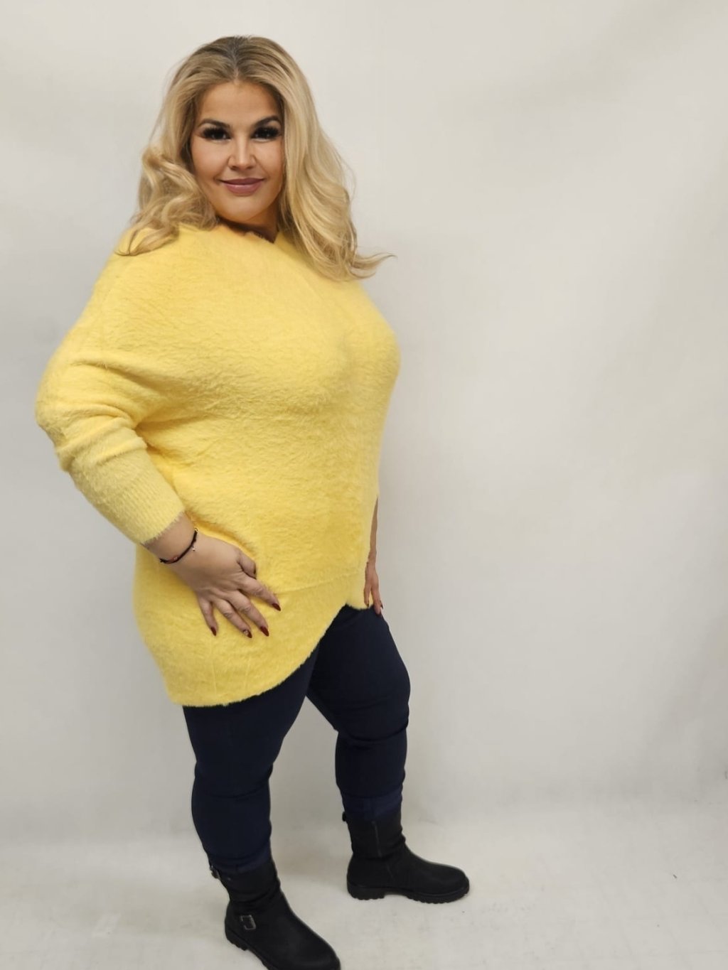 Huňatý svetr s véčkovým výstřihem – žlutý