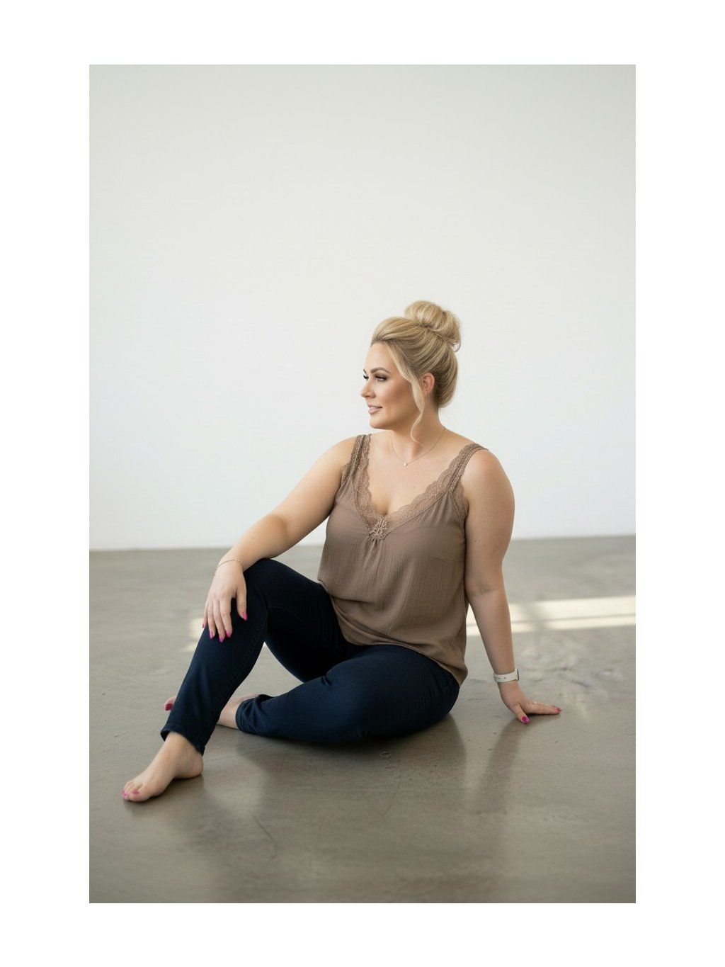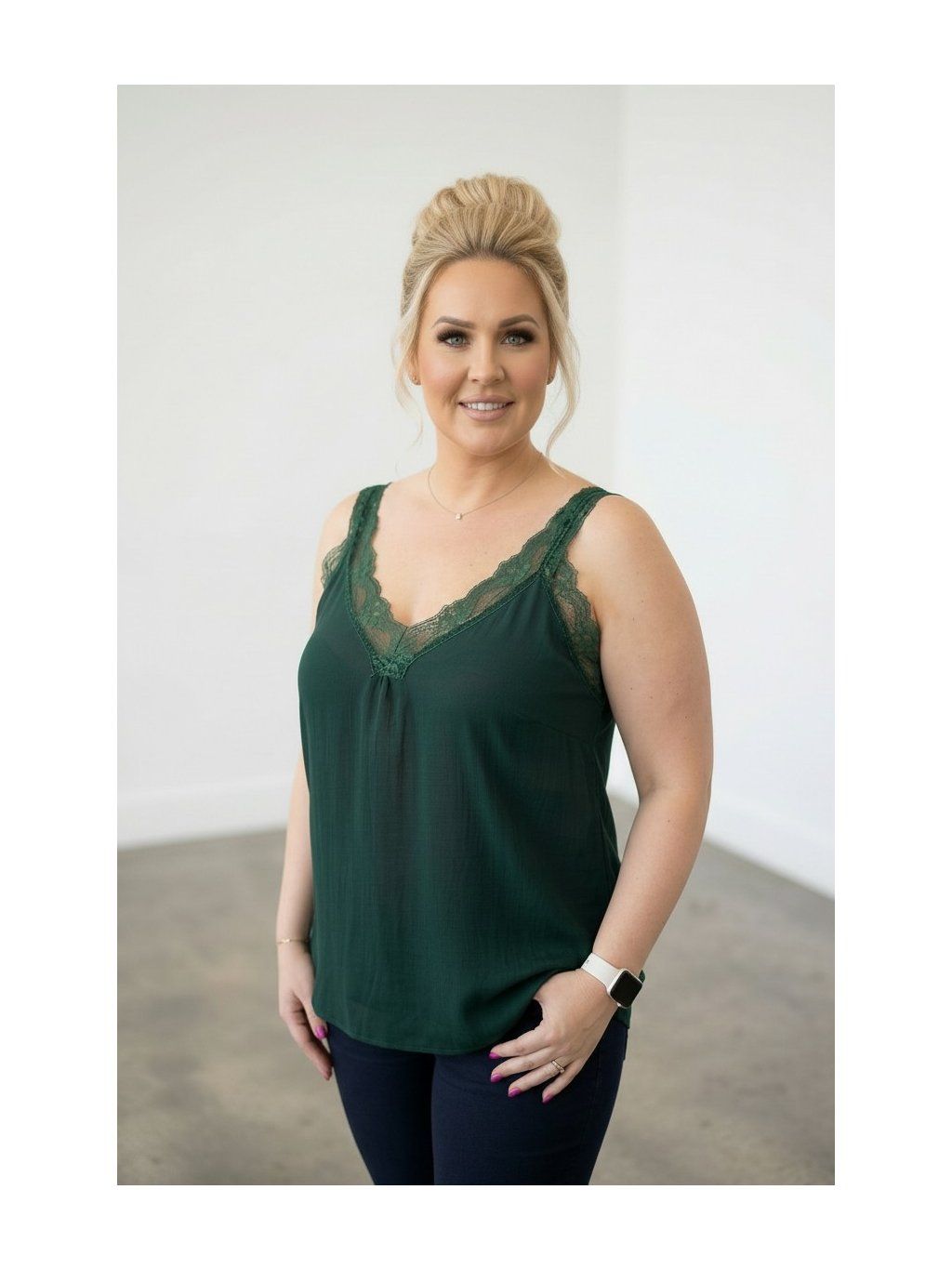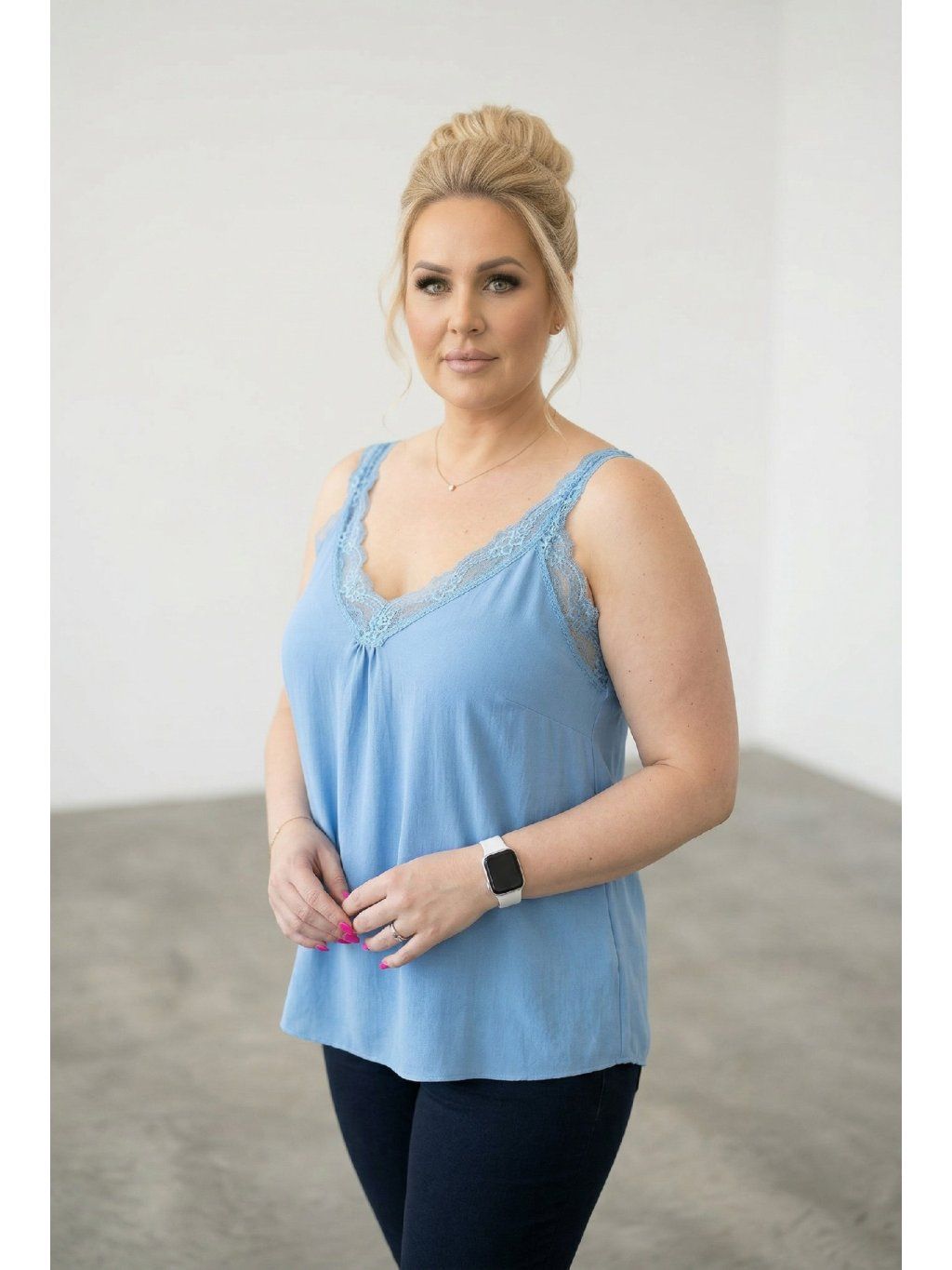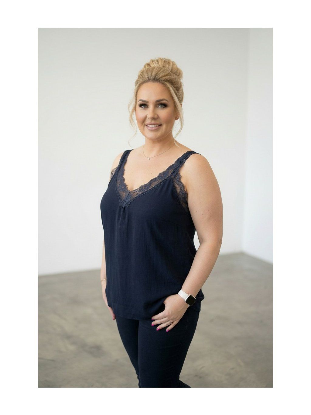 Modelka měří 167cm a běžně nosí oblečení vel.48