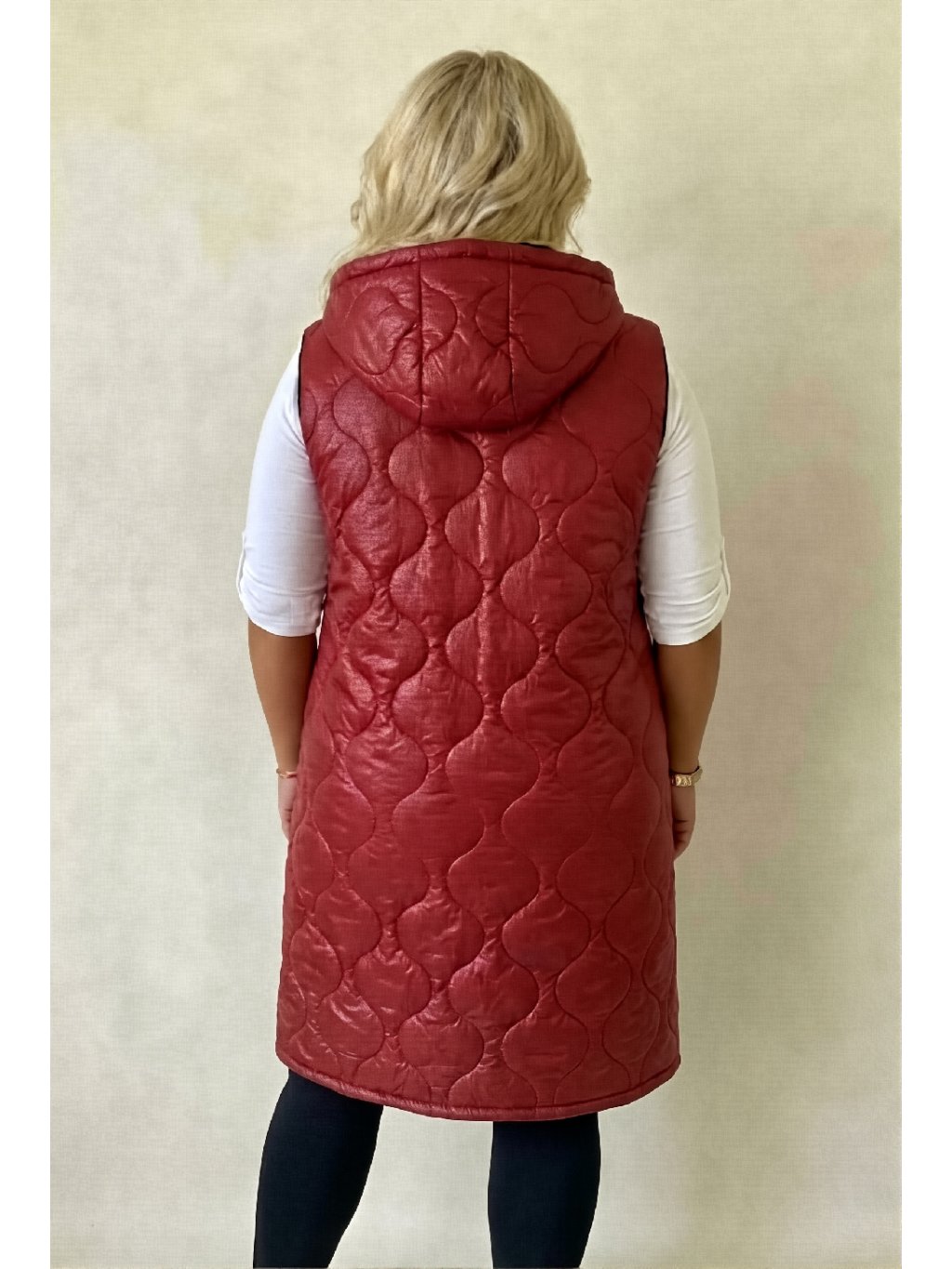 Praktická a stylová vesta, kterou si zamilujete na přechodné období i chladnější letní rána. Lehká, prošívaná, a díky prodlouženému střihu krásně zakryje záda i boky. Pevně přišitá kapuce ochrání před větrem, dvě prostorné kapsy udrží ruce v teple i drobnosti po ruce.
